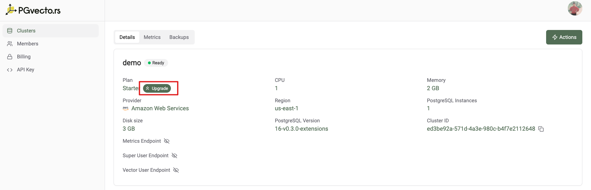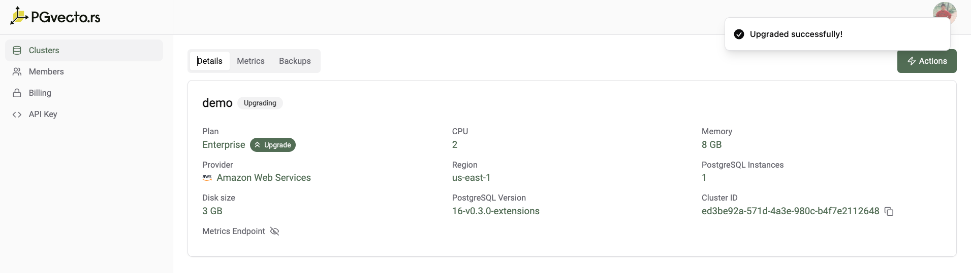 You may need to upgrade your cluster and do not want to lose any data. You can upgrade the server resource like CPU, memory. Or you only want to upgrade the storage. The following sections will guide you through the process of upgrading your cluster.