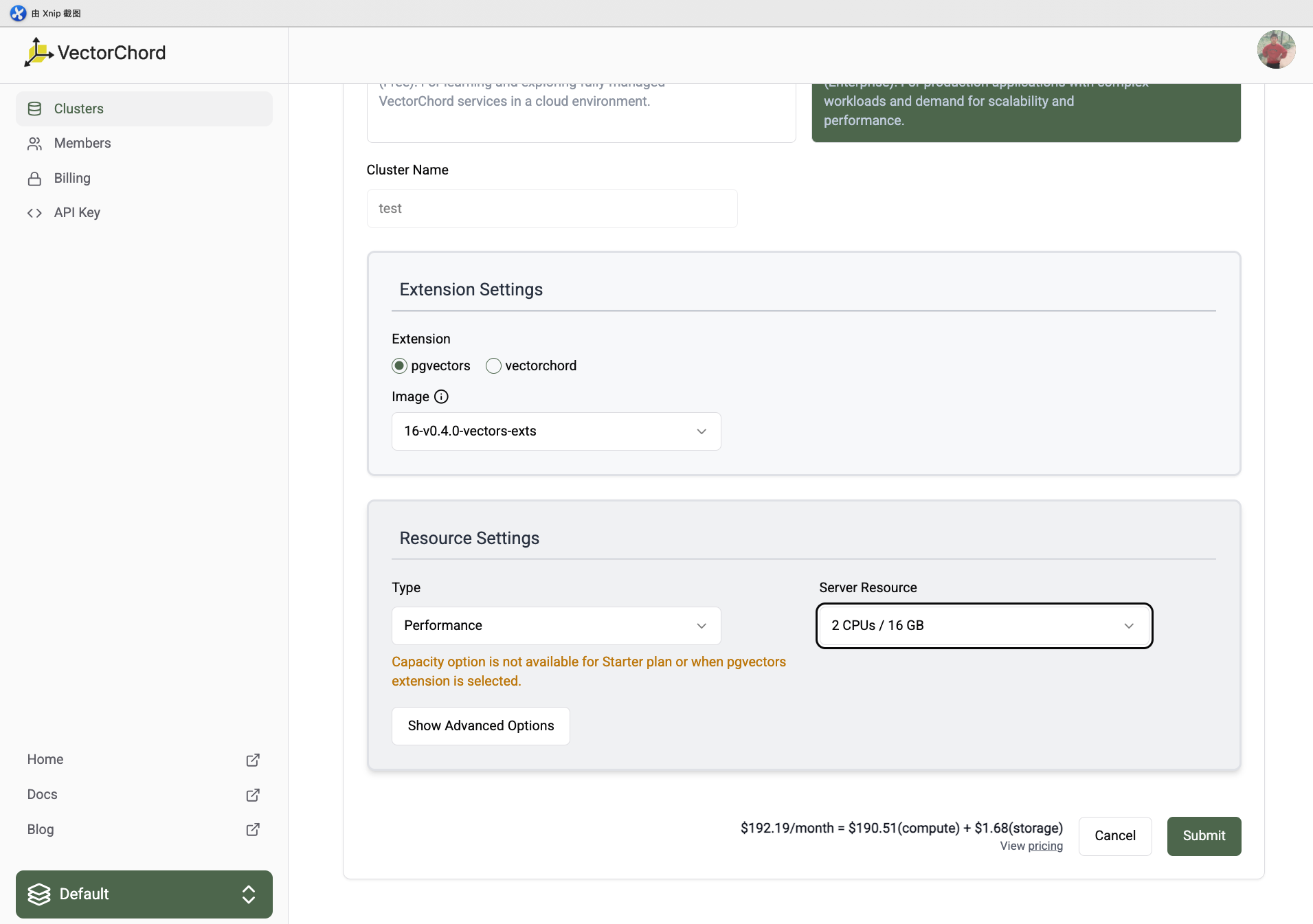 In the upgrade page, you can select the new plan and server resource. The price will be calculated based on the new server resource. Click the Submit